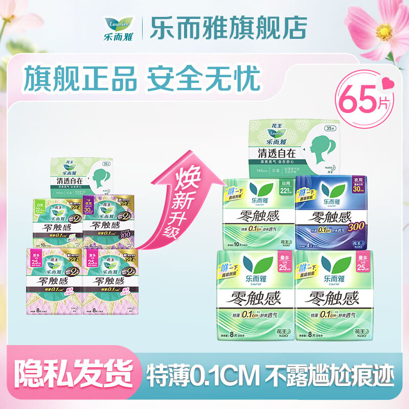 乐而雅花王零触感卫生巾65片,到手价28.8元仅0.4/片!