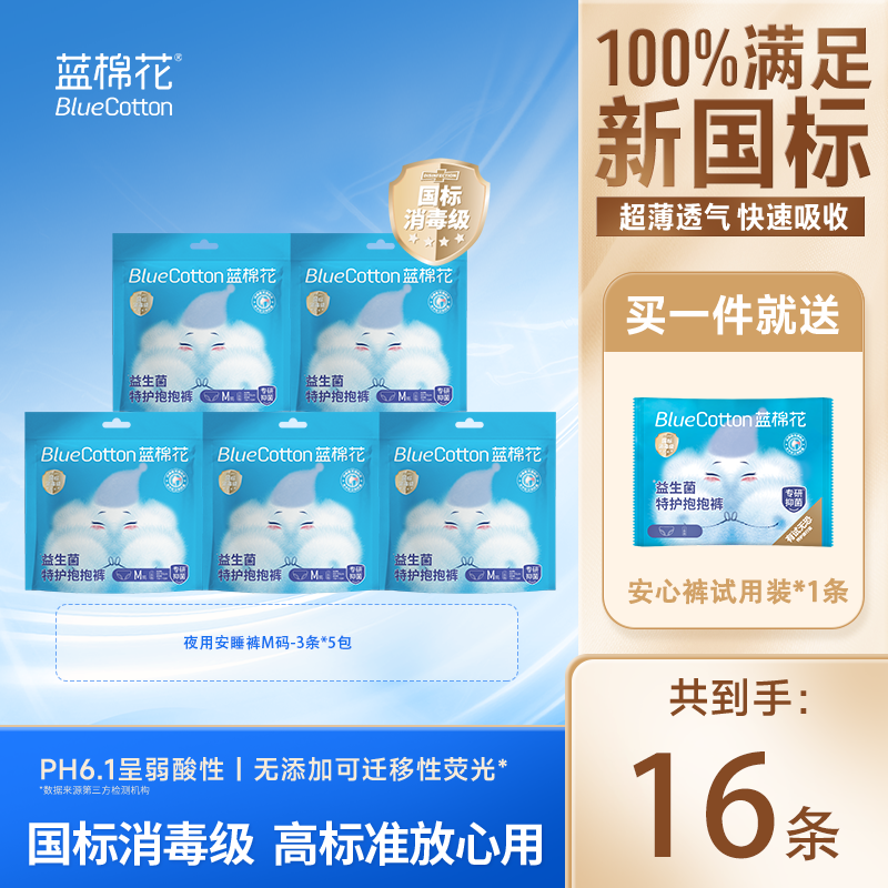 蓝棉花益生菌安睡裤16条,折后仅需23.9元!
