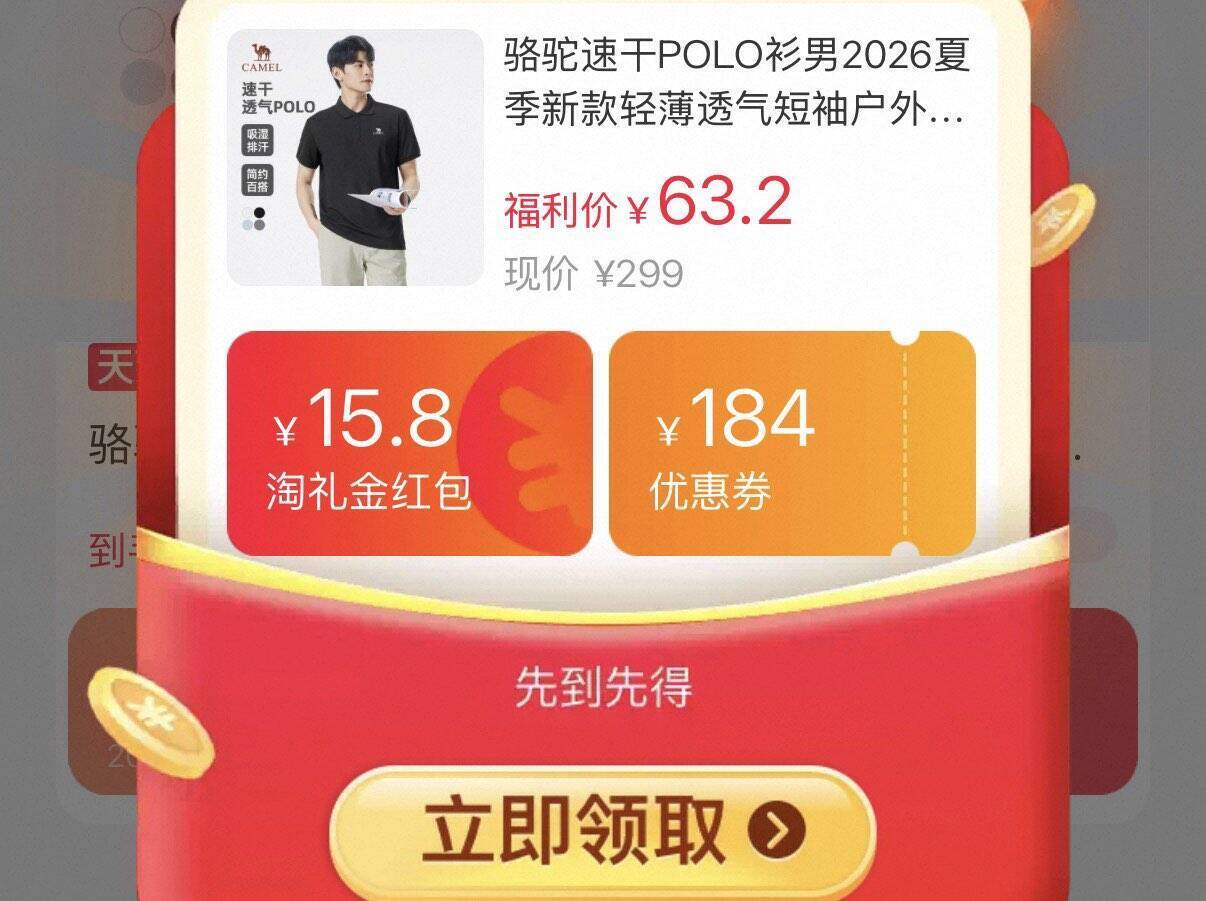 骆驼速干透气Polo衫 最终到手价63元