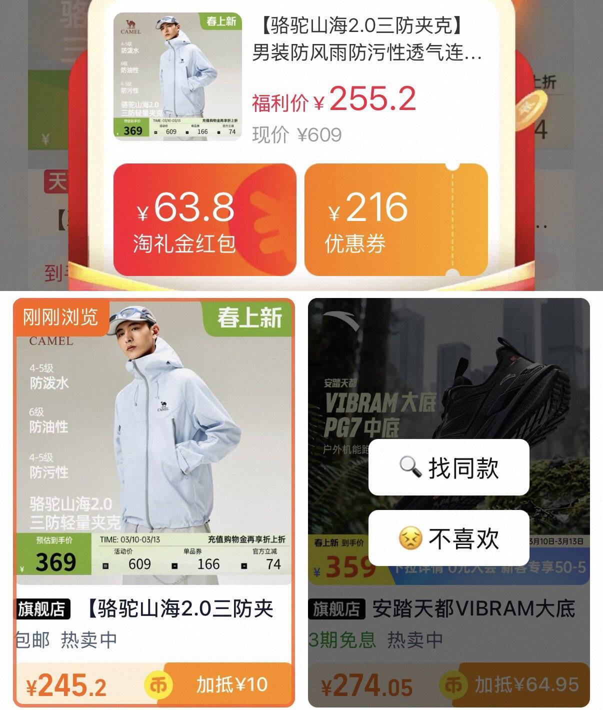 骆驼山海2.0三防夹克到手价232元