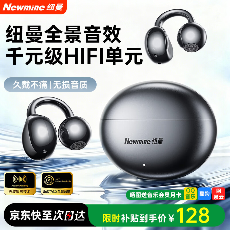 ¥98 纽曼(Newmine)【2026最新款丨智能AI】蓝牙耳机无线骨传导概念耳夹式不入耳翻译同声传译运动跑步降噪超长续航 黑色丨AI大模型丨实时翻译 158