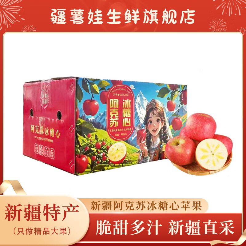 ¥69.9 疆薯娃 正宗新疆冰糖心阿克苏苹果 脆甜多汁 新疆直采 新鲜水果 【店铺推荐】带箱10斤果径85mm+净重8.5斤 89.9