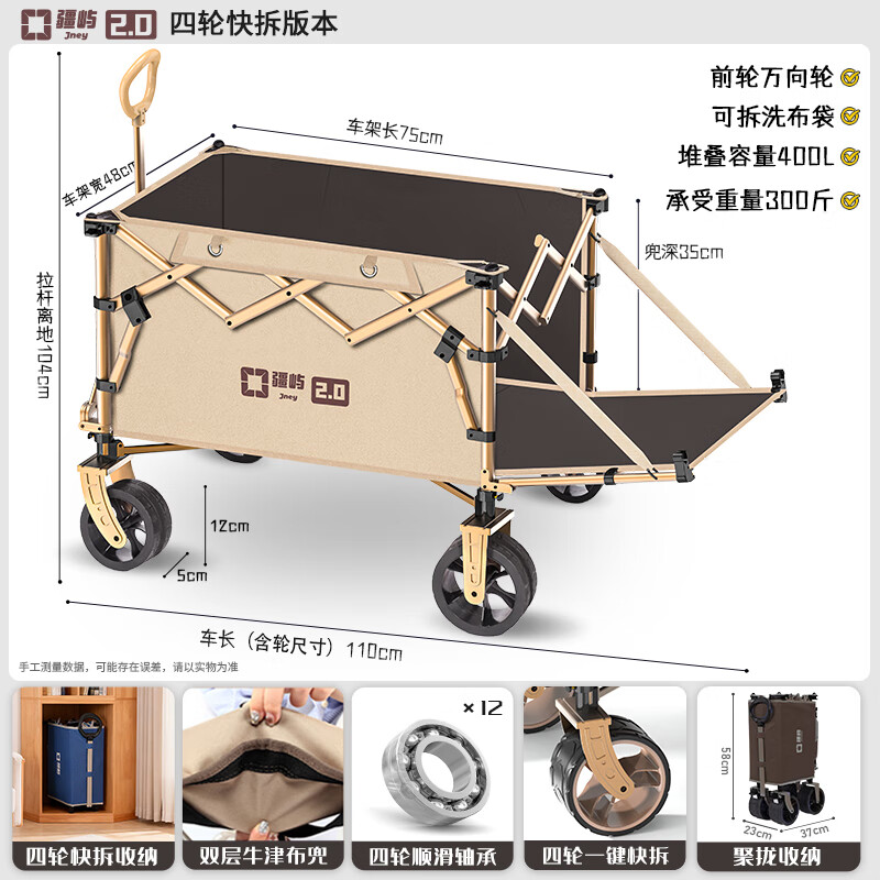 ¥246.4 疆屿2025新款巨型露营车户外折叠聚拢摆摊野餐旅行快递小推车儿童可躺 卡其【聚拢旅途者MINI】四轮快拆 全车10静音轴承 247.5