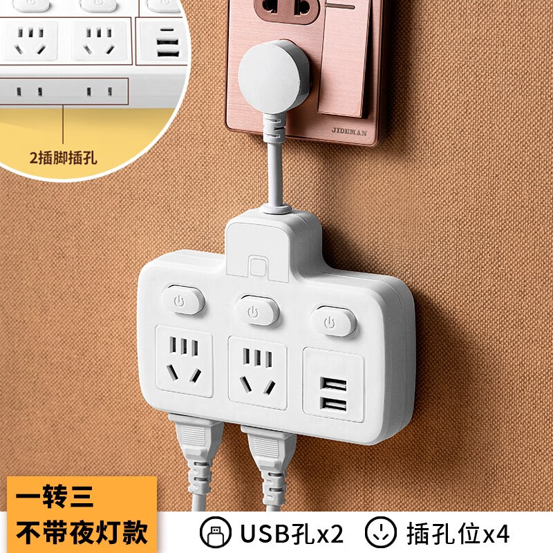 ¥20.8 达聚科柔性插座转换器无线插排小夜灯多孔家用USB充电多功能一转多电源接线板USB充电安全门适用于卧室 柔性品字形一转四【带USB款】 52.8