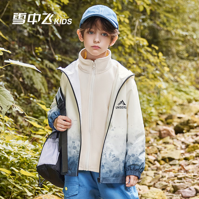 ¥59 雪中飞kids春冬新款男女童三合一户外登山两件套保暖外套 冰蓝色0451 150 79