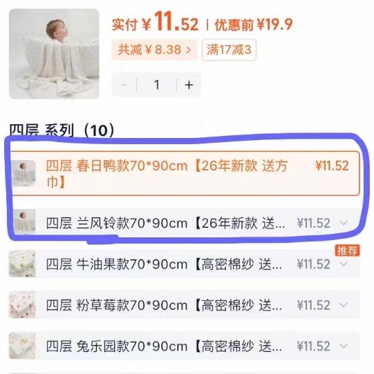 婴儿纯棉浴巾70×90cm+方巾 历史首降到手价11.5元