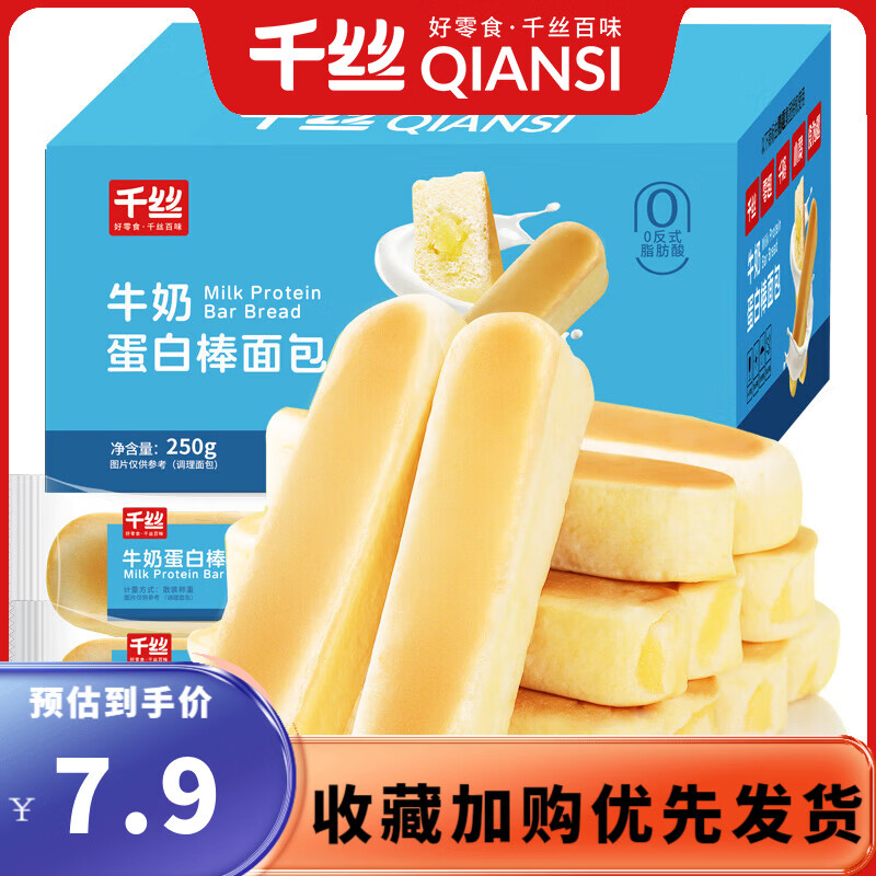 千丝牛奶蛋白棒面包250g领7-2补贴券后仅需5.9元