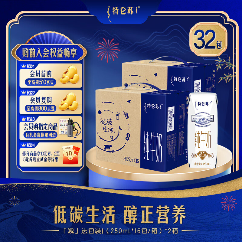 特仑苏纯牛奶2箱装Plus到手77.23元,折合38.6元/箱