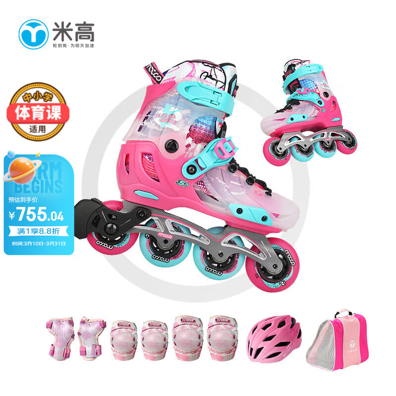 ¥755.04 米高轮滑鞋儿童溜冰鞋旱冰鞋可调节初学休闲花式两用中小学生培训鞋S7 粉色MK9套装(MK9盔+PE1护+包) S-7 M (推荐鞋码33-36) 858