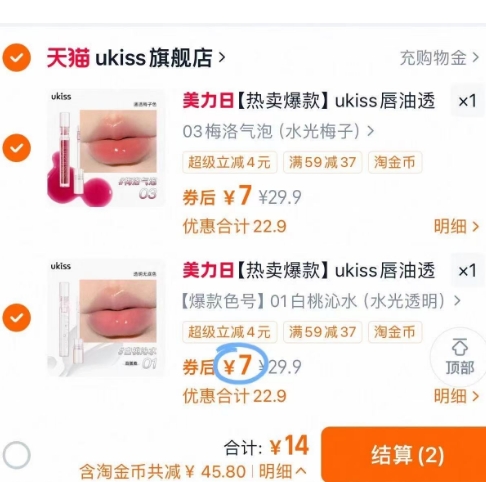 ukiss唇油6色任选2支仅需14元