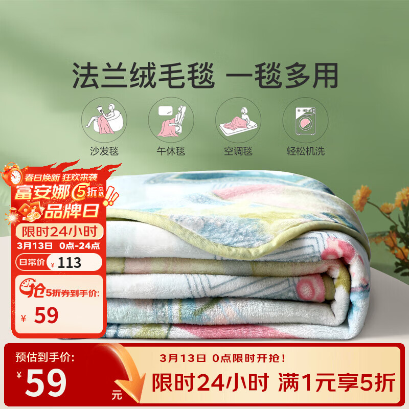 富安娜家纺合集:法兰绒毯59元起、四件套138元