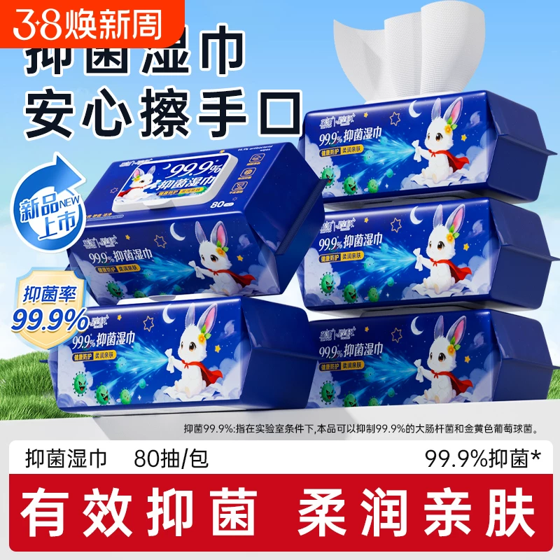 ¥3.5 【淘工厂天降】80抽*1大包蓝漂抑菌湿巾 5.5