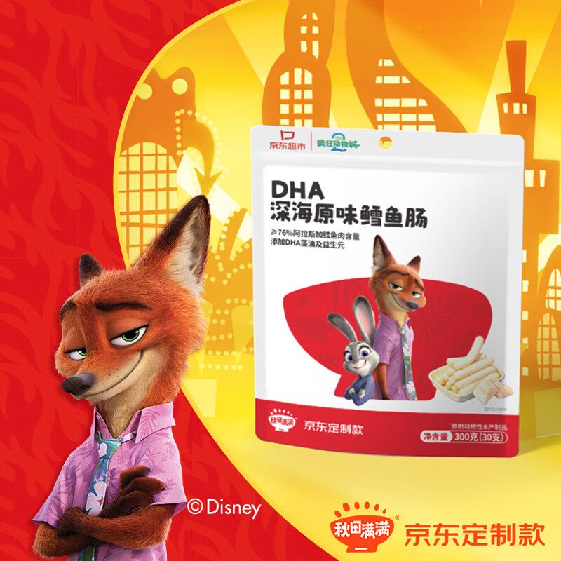 秋田满满疯狂动物城鳕鱼肠:黑五券到手仅33.74元/箱(折0.46/支)