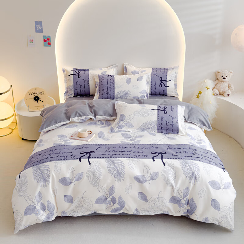 ¥79.9 多兰诗(Duolanshi)春秋磨毛四件套 斜纹印花卡通套件被套床单宿舍四季床上四件套 爱情叶 1.8米 床笠款 /被套200*230 四件套 169.9
