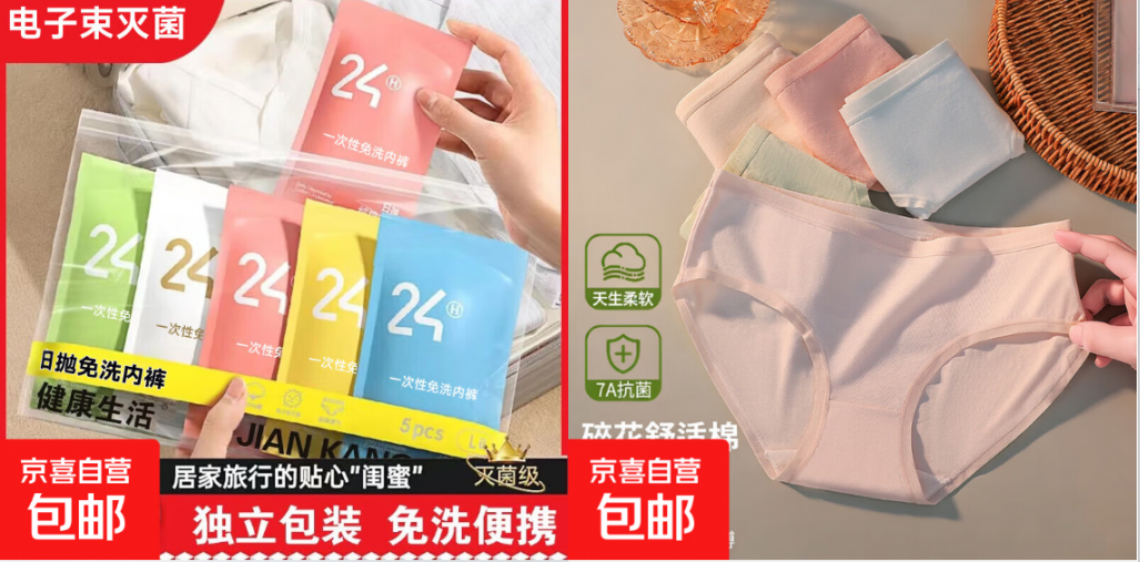 京东速抢!一次性内裤0.7元/纯棉抗菌女士内裤1.5元