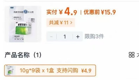 4.9💰999三九感冒灵颗粒9袋