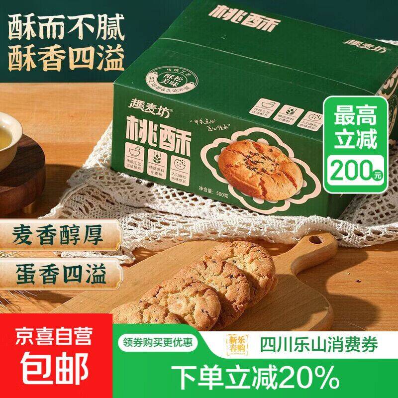 京东趣麦坊桃酥500g*1盒:政府8折券叠加,到手价仅需3.99元