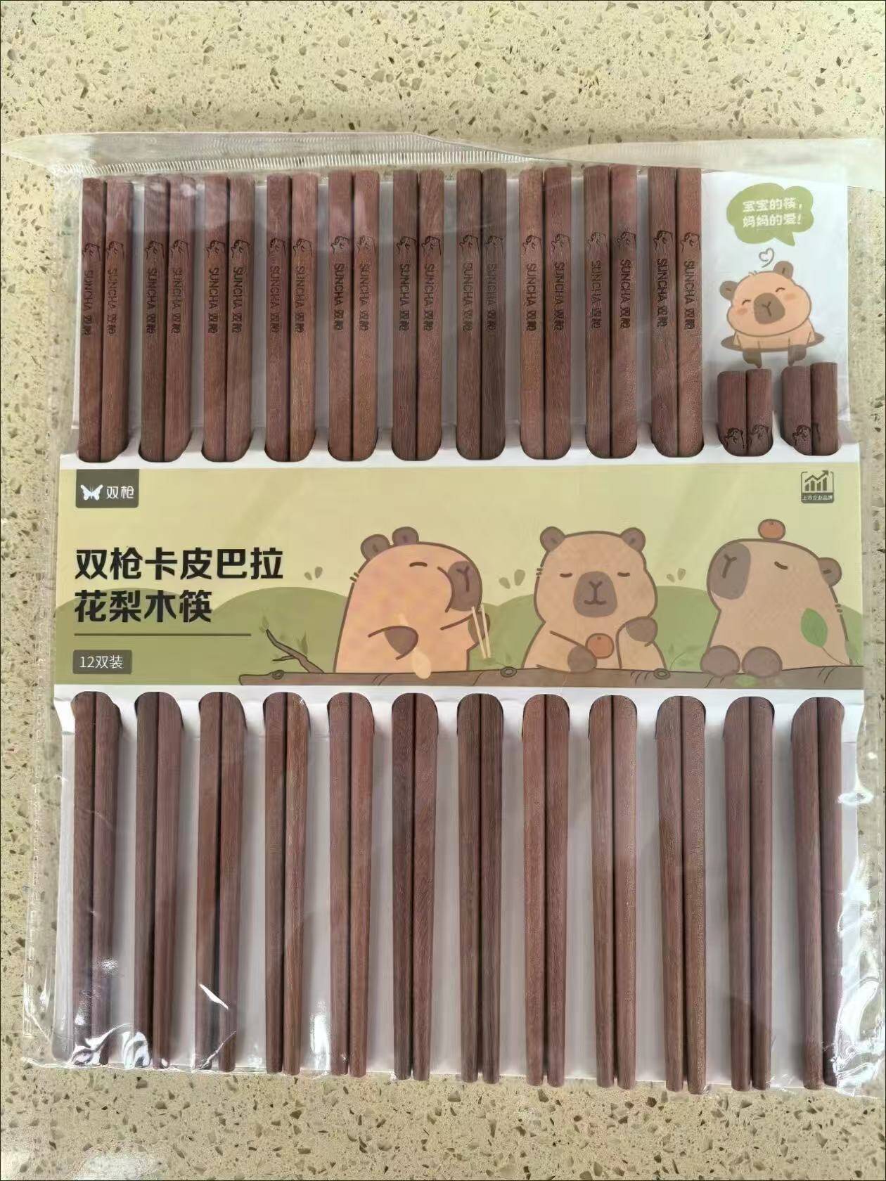双枪卡皮巴拉花梨木亲子筷 12双装到手9.94元