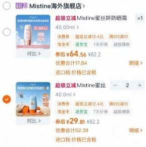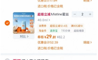 拍82.2元选项,领75元券,商品页右上角三个点点进去-底部淘金币点进去-淘金币 我的足迹页加购2件,叠淘金币,折29元/支(看图怎么选也可以);
