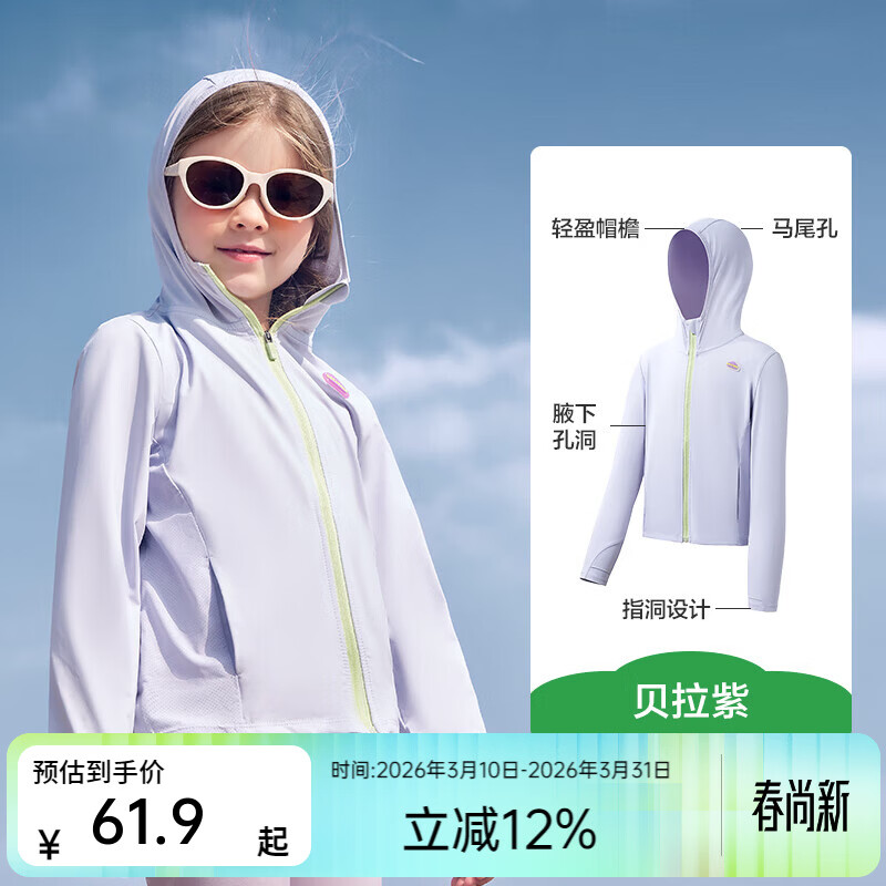 亚瑟士中大童冰蝉翼防晒衣 直降5折仅需69元