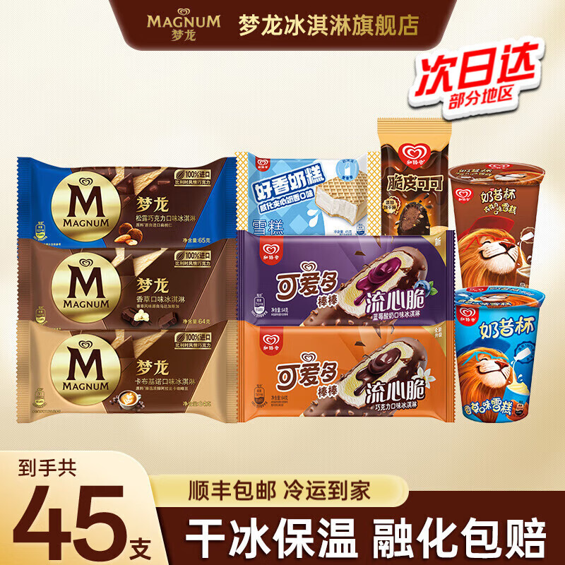 和路雪梦龙冰淇淋全家福45支,到手价仅3.1元/支