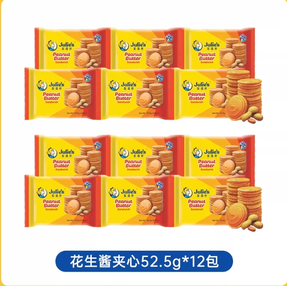 23.9元包邮!julie's 茱蒂丝 花生酱夹心饼干 52.5g*12袋 共630g