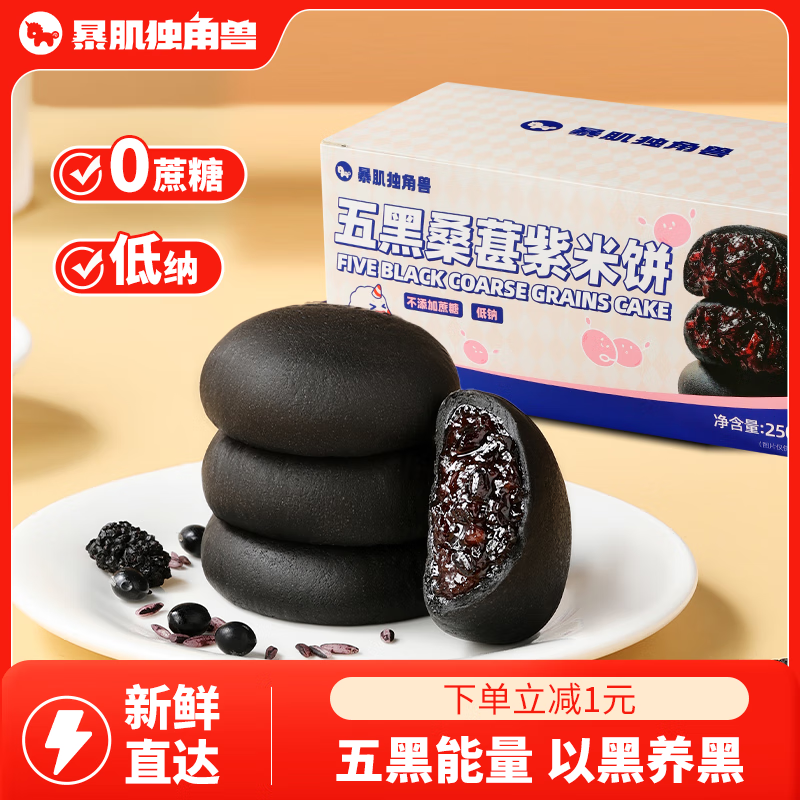 暴肌独角兽0蔗糖五黑饼首单仅6.95元