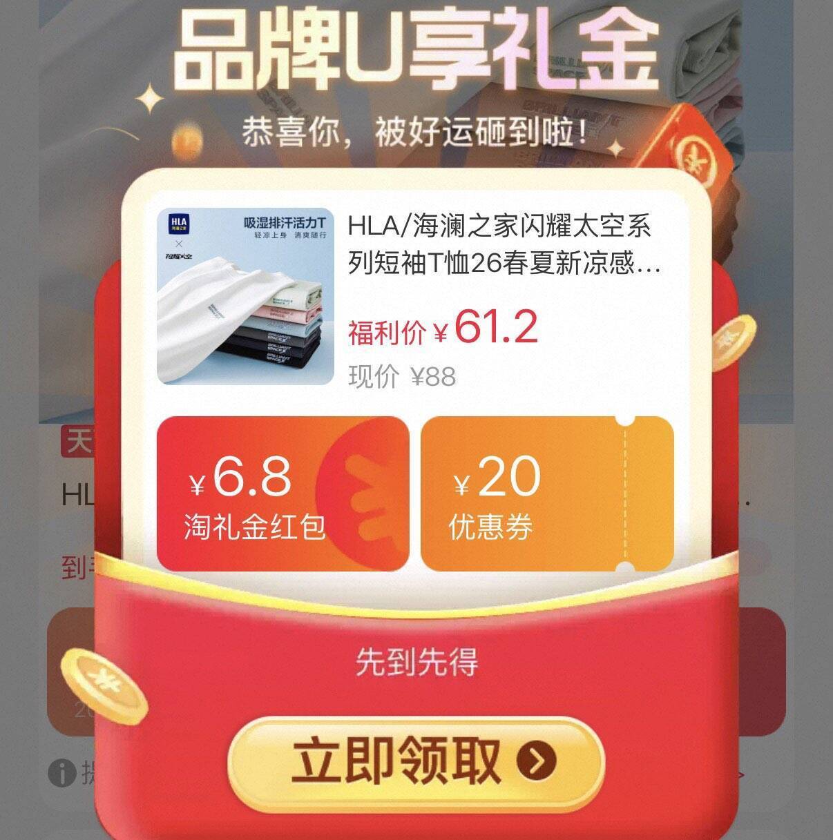 海澜之家新款吸湿速干短袖 61元
