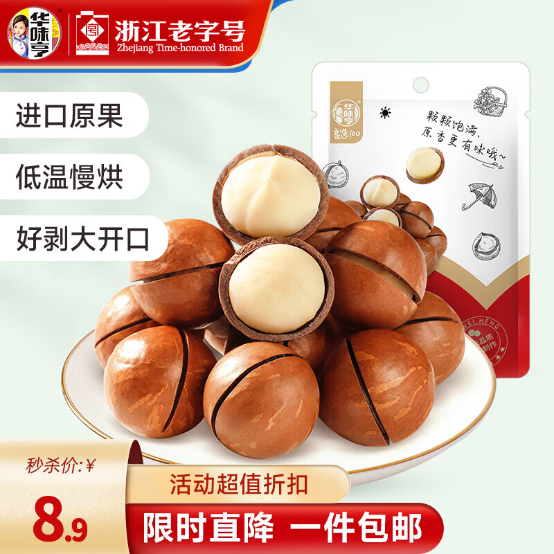华味亨夏威夷果100g,买5件仅需19.5元还赠瓜子