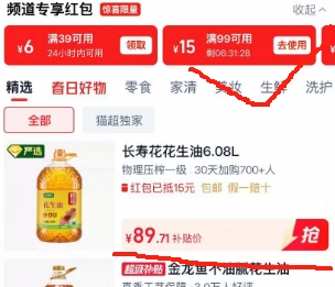 商品页价格下拉详情页-超级补贴点进去-跳转页面领99-15元红包,页面加购,实付低至89.7元包邮;