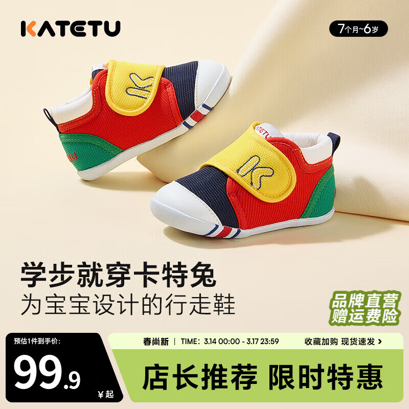 ¥139.9 卡特兔学步鞋婴儿童鞋春季男女宝宝步前机能鞋幼儿园室内经典百搭软底鞋 黄红蓝(棉纱) 23 内长14.0cm 脚长13.0-13.5 169.9