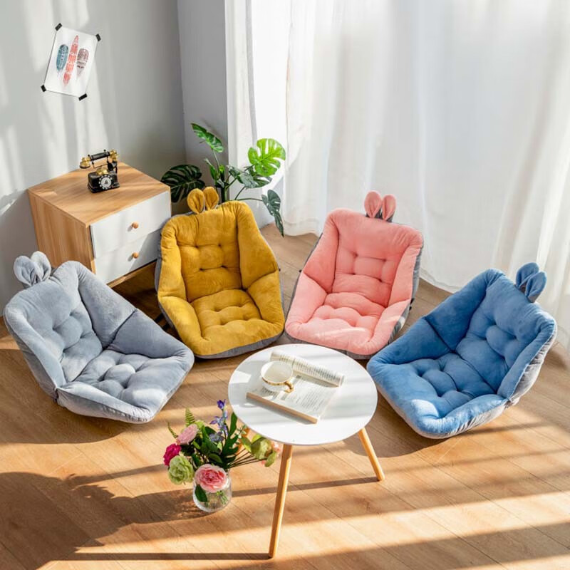 ¥29 南柯一梦 加绒坐垫地上座椅一体靠垫 办公室椅子垫学生坐垫靠背屁股垫保暖 小号兔耳朵灰色【40*40】 59
