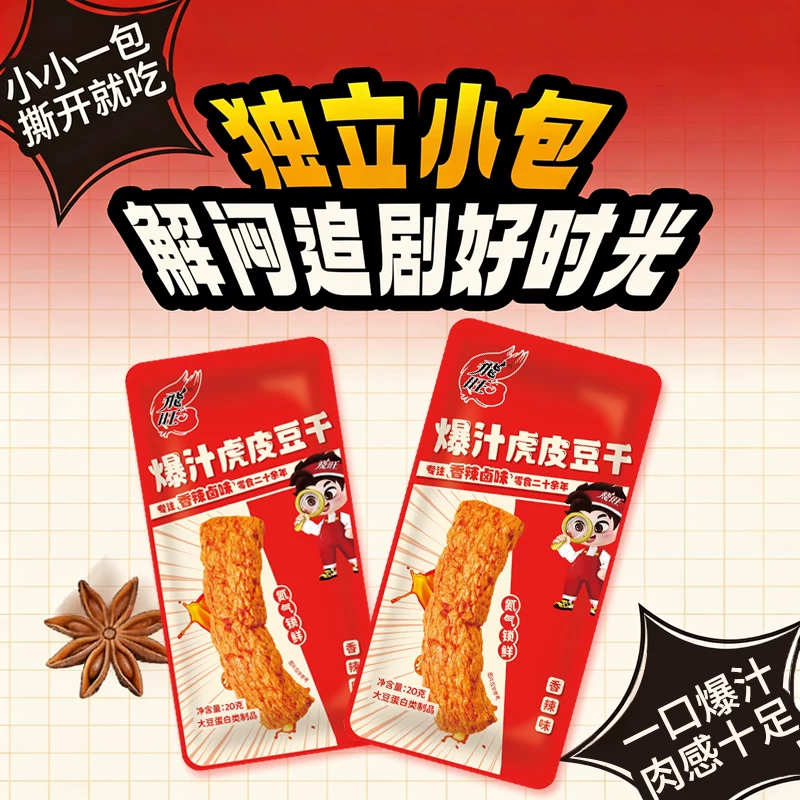 ¥5.9 飞旺虎皮爆汁豆干20g*5包 9.9
