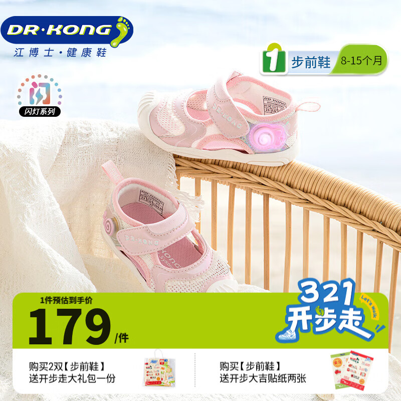 ¥179 江博士夏季男女童透气闪光灯款步前鞋宝宝学步舒适卡通幼儿童鞋儿童凉鞋 粉红/米 22 脚长约13.0-13.6 329