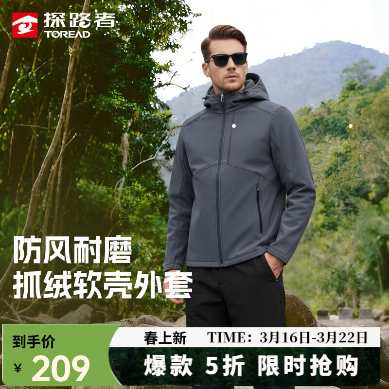 ¥251 探路者(TOREAD)软壳衣耐磨抓绒通勤外套男春秋冬户外防风弹力登山服奥莱商场同款 蓝岩黑 3XL 418