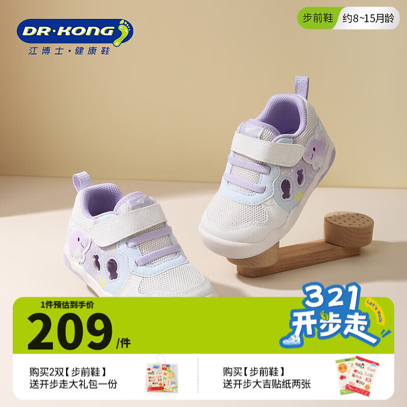 ¥209 江博士(DR·KONG)春季男女童镂空透气步前鞋卡通萌宠婴儿童鞋 米/紫/蓝 22 脚长约12.7-13.3 359