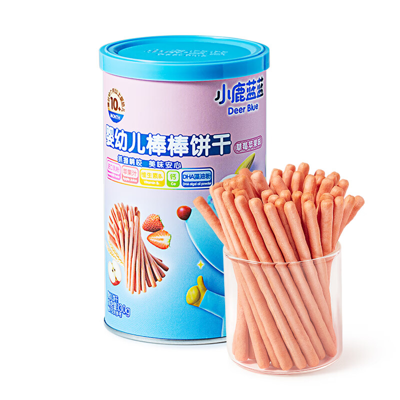 ¥13.9 小鹿蓝蓝婴幼儿棒棒饼干炭烧棒磨牙棒手指饼干一岁宝宝零食婴标无添加盐 【10月+草莓苹果味】1罐 19.9