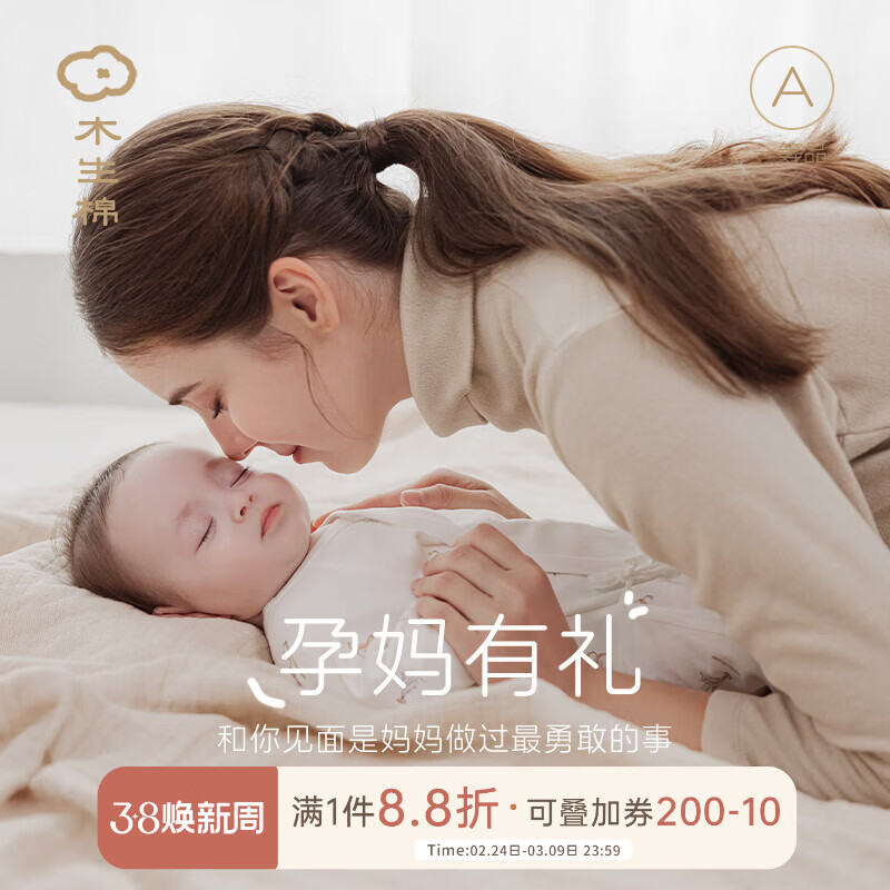 ¥39 木生棉孕妈有礼 新客39元 木生棉春夏季新生儿连体哈衣秋装婴 幼时小物100%棉四季款 59cm 【1-3月龄建议3.5-6.5kg】 99