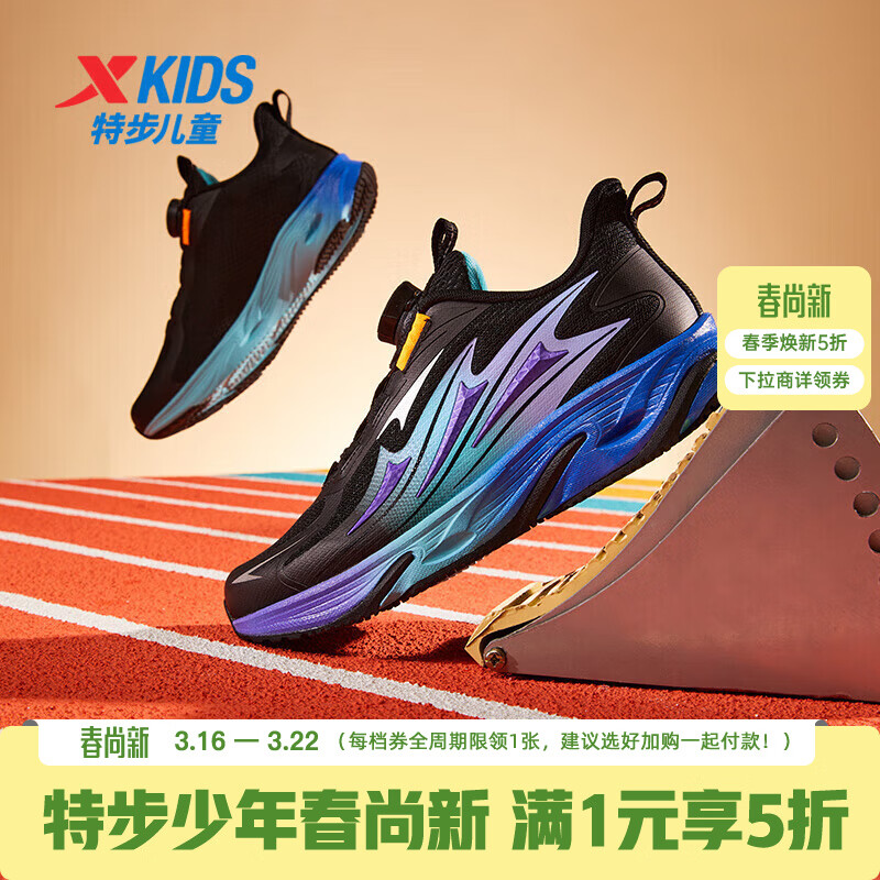 特步儿童龙翼旋钮扣运动鞋 5折券到手114.5元