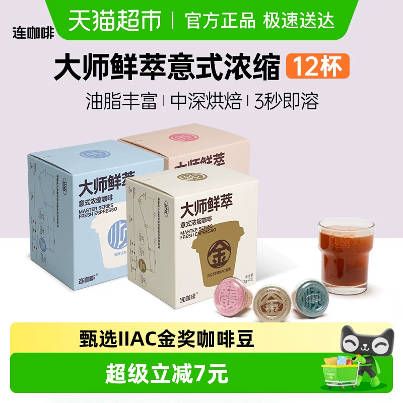 ¥12.58 连咖啡大师鲜萃IIAC金奖黑咖啡3g*12杯 22.58