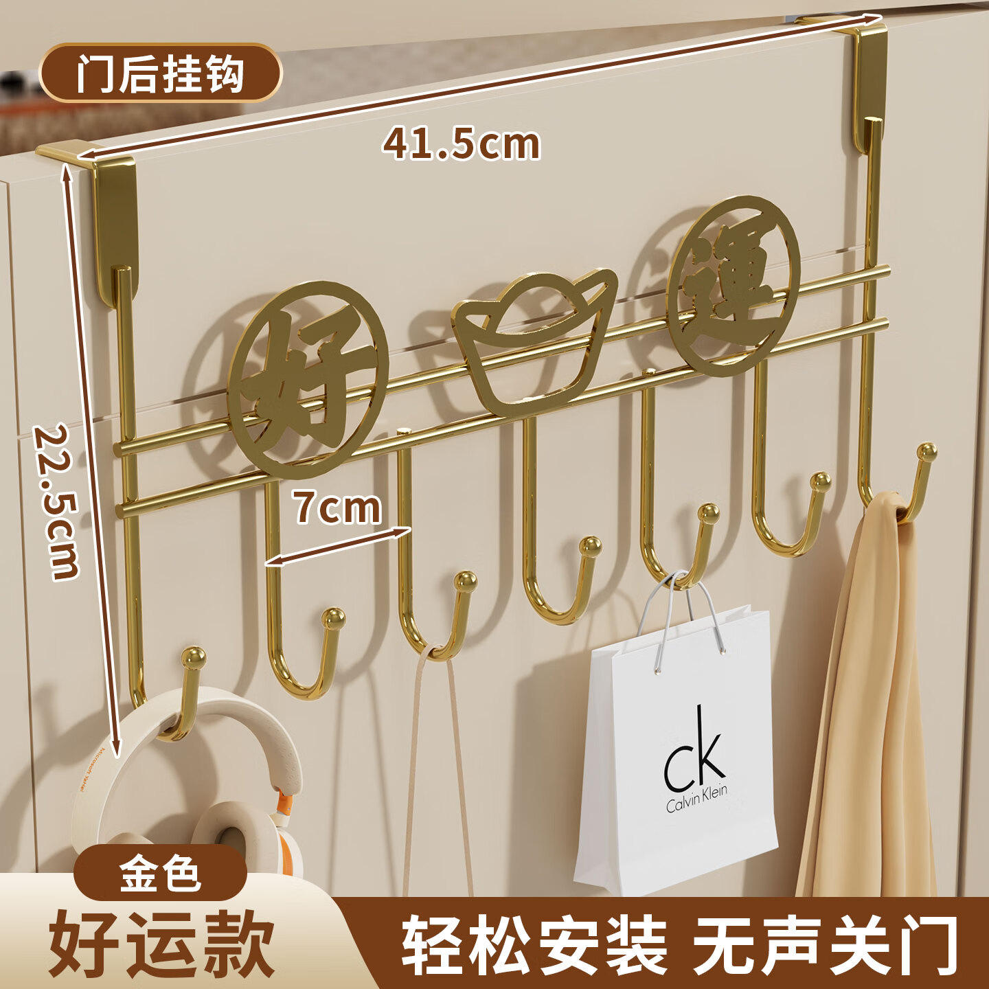 ¥19.2 百草园门后挂钩免打孔挂衣架房间门后衣服收纳挂钩置物架挂包架衣帽 好运款 金色 7钩 22.2