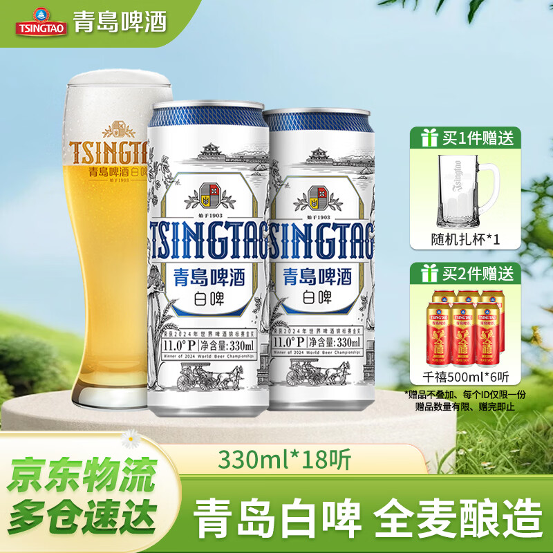 青岛啤酒全麦白啤330ml*18罐 Plus会员买2件仅需126.6元