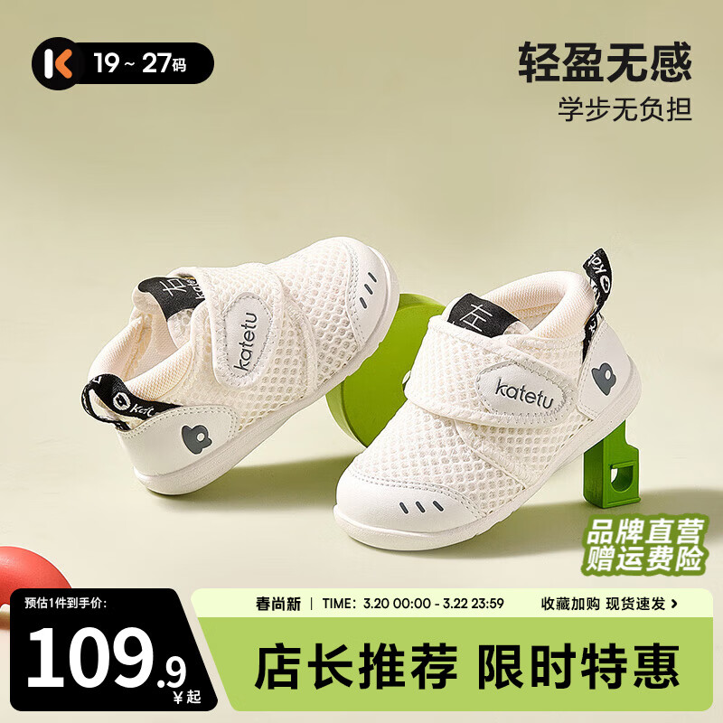 ¥139.9 卡特兔学步鞋婴儿1-3岁透气网面童鞋春季机能鞋幼儿园宝宝室内鞋X2AE003 白色 24 内长14.5cm 脚长13.6-14.2 169.9
