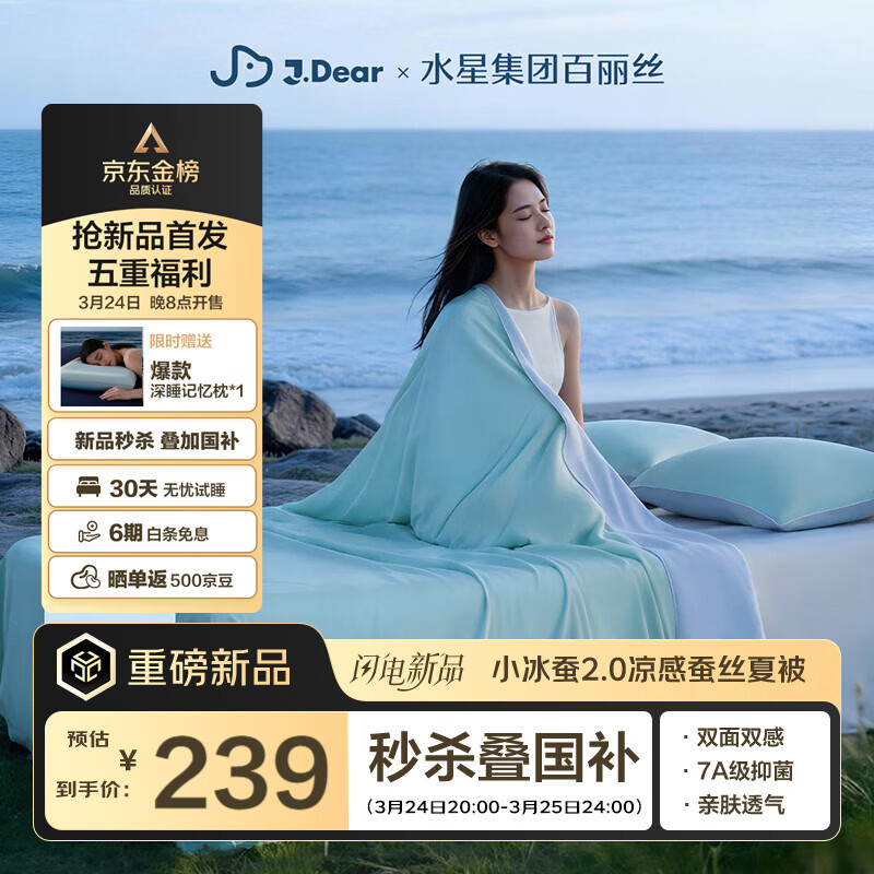 水星家纺百丽丝xJDear联名小冰蚕2.0凉感蚕丝被 叠加政府补贴后仅需238.4元