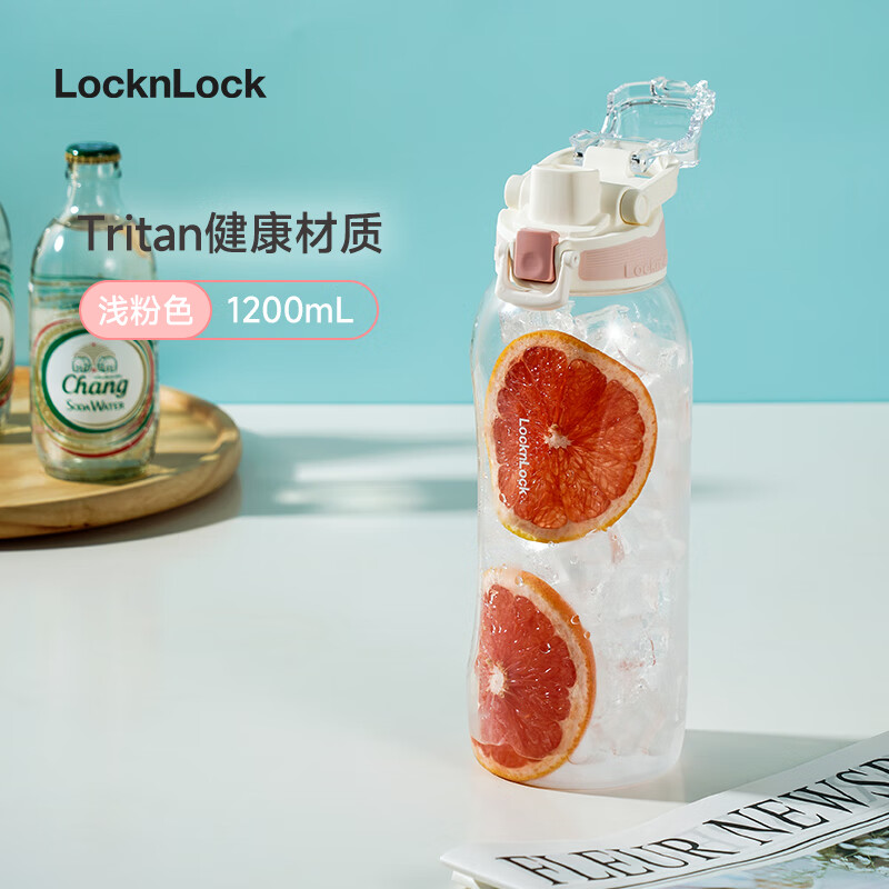 ¥39.2 乐扣乐扣(LOCK&LOCK)户外大容量运动水壶水杯子塑料杯便携健身水杯 蜜桃粉1.2升 79.2