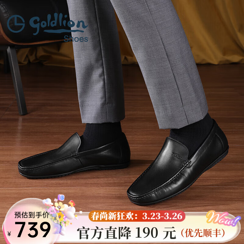 ¥899 金利来(Goldlion)豆豆鞋男春季皮鞋男商务休闲鞋男柔软百搭乐福鞋套脚鞋男士皮鞋 黑色 37 929