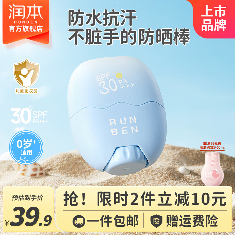 润本儿童防晒棒22g,Plus会员到手仅22.9元还返5元超市卡