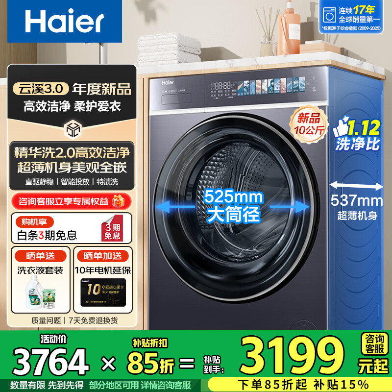 海尔云溪4.0滚筒洗衣机578 到手价3764元