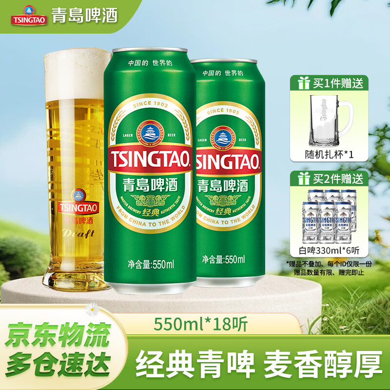 青岛啤酒经典原麦18罐装,Plus会员拍2件仅需152元还赠全麦白啤