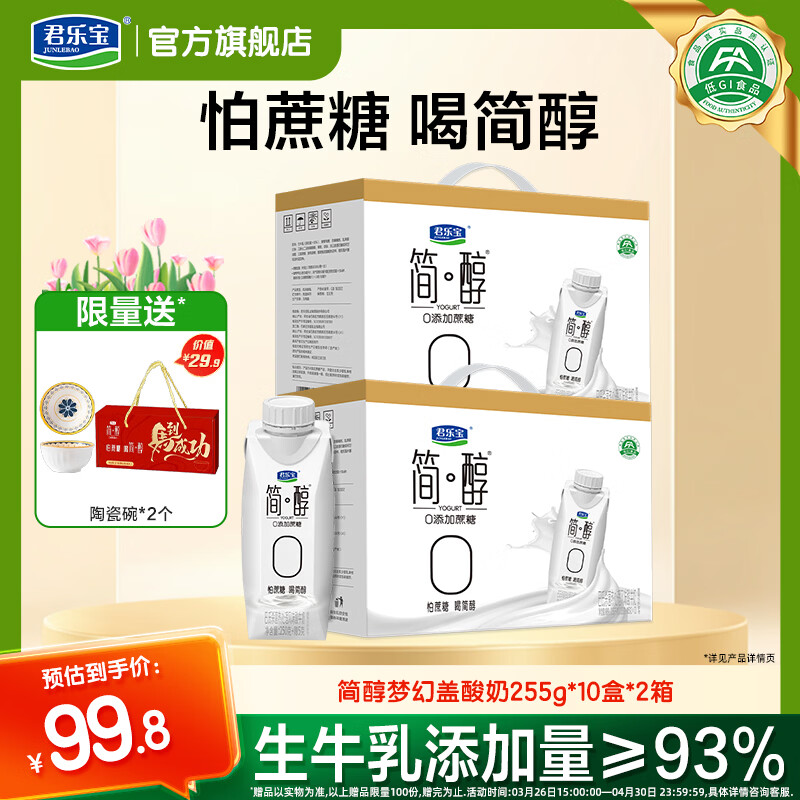 君乐宝0蔗糖简醇酸奶礼盒 2箱到手74.8元